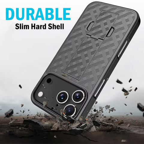 - 2-in-1 carrying Solution and unique slide-in design for ease of use for iPhone 17 Pro (6.3") ONLY. High quality shell holster case with anti slip grip design.