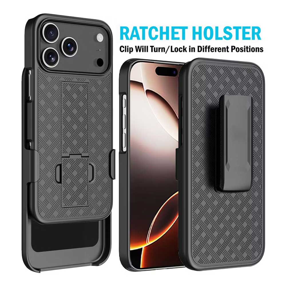 The high-quality build with its smart design allow you to carry your new iPHONE 17 PRO (6.3") around easily and comfortably. Slim, stylish design features rugged skin tough enough to handle bumps, scratches and shocks.This swivel holster and rear cover is exactly what you need. Rubberized Swivel Holster with Rear Cover Shell included. Allows your phone to be worn on a waistband or belt and can be taken off of the belt clip without removing it. A locking swivel belt clip is easily locked into an extended position and provides different viewing angles while watching movies or video calls, also rotatable 180 degrees. The case can be also be used with holster or as a separate, slim carrying solution. Advanced locking mechanism securely holds phone in place. Precisely cut to preserve full use of volume buttons, charger, camera, microphone, headphone jack, and all other ports.